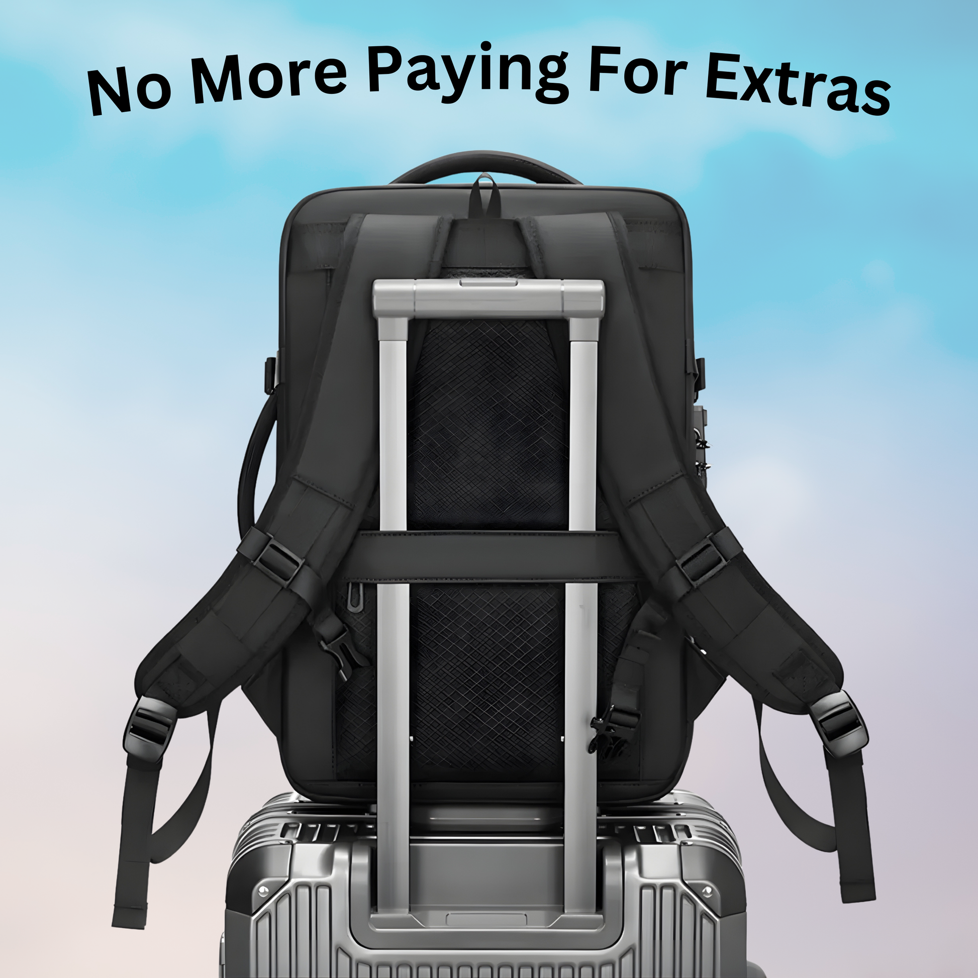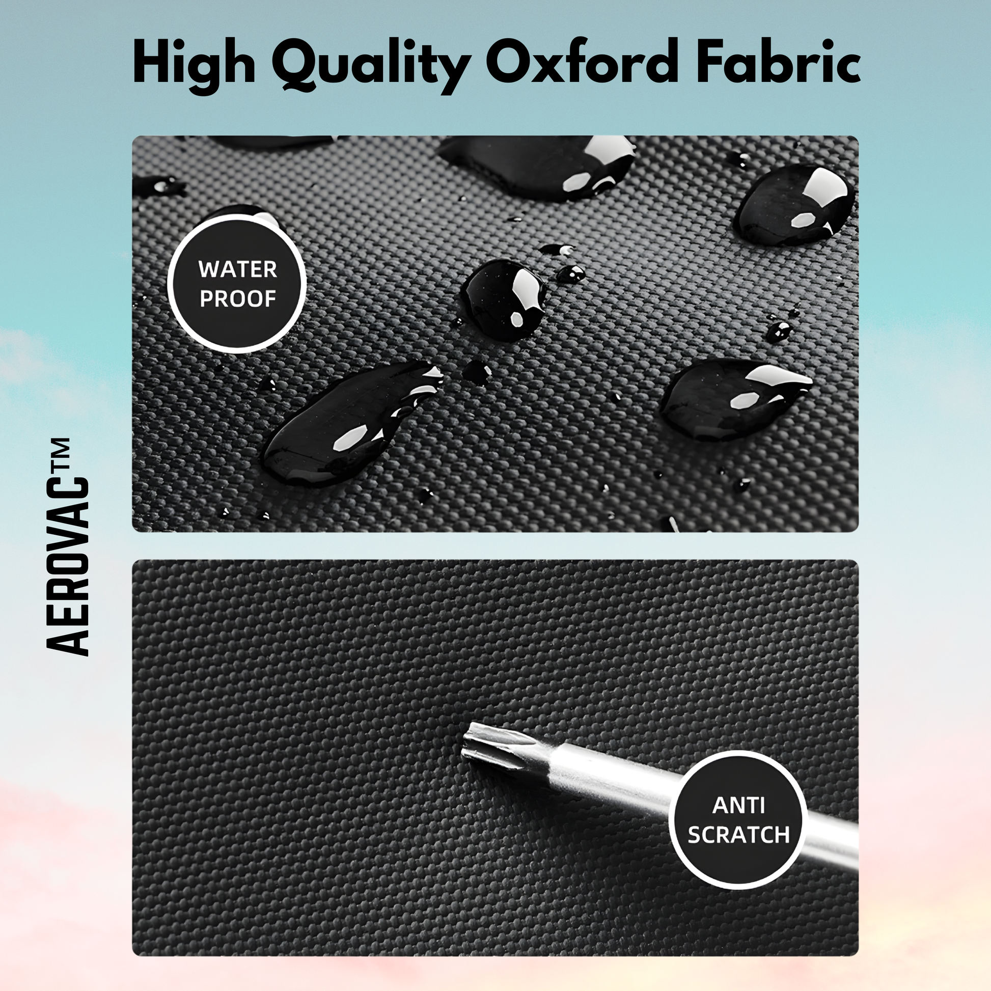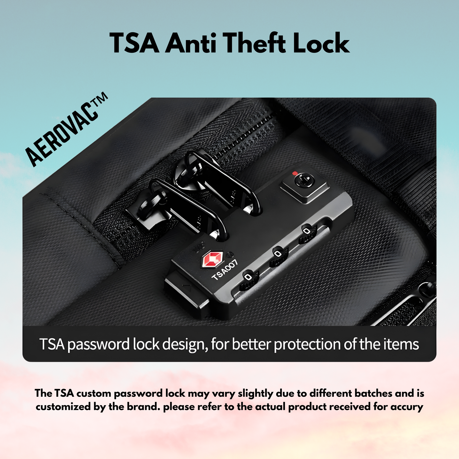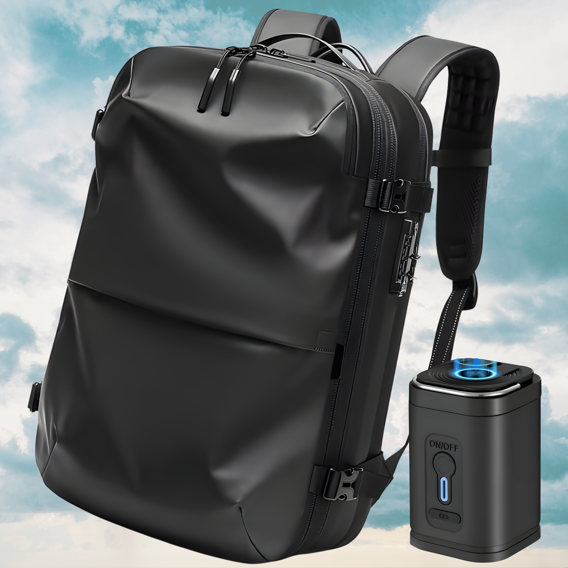 Made with waterproof Oxford fabric and an internal TPU sealed vacuum bag, it protects your belongings even in extreme conditions. Includes a vacuum pump, TSA anti-theft lock, and an ergonomic design for maximum comfort.